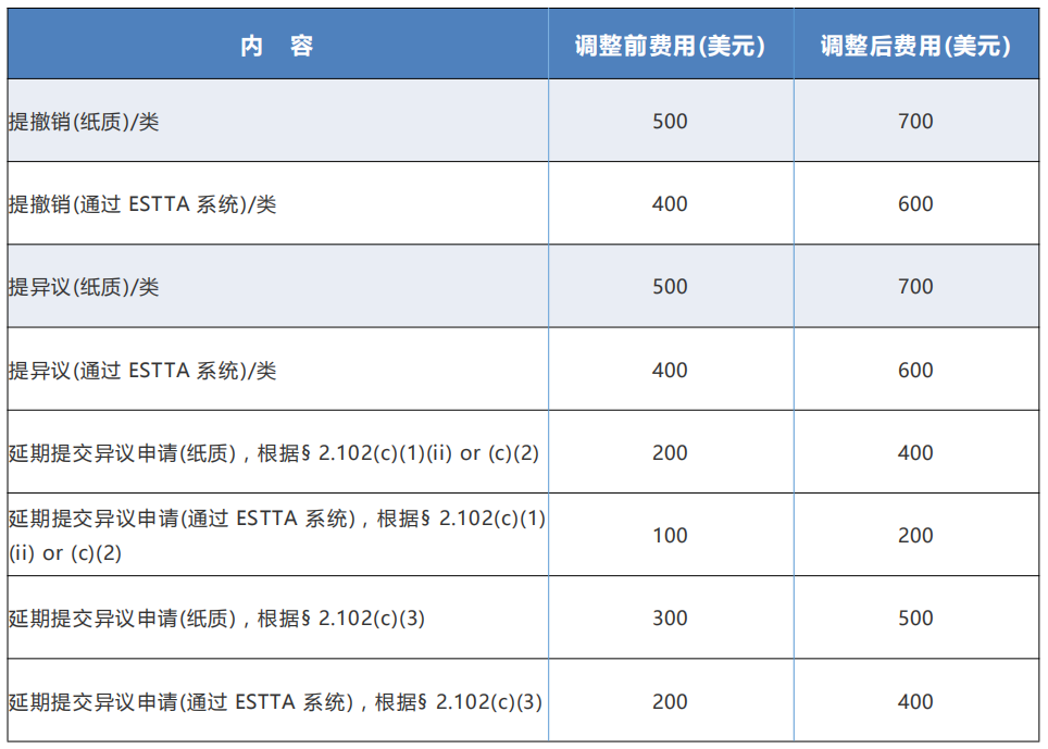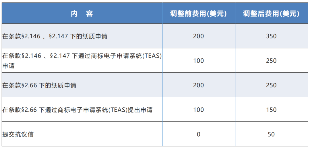 - TTAB opposition,appeal and trial proceedings(商標(biāo)審理與上訴委員會(huì)的異議、上訴和審判程序)現(xiàn)今美國(guó)專利商標(biāo)局正式公布漲價(jià),這也是美國(guó)商標(biāo)局近三年來(lái)第一次上調(diào)收費(fèi)標(biāo)準(zhǔn)