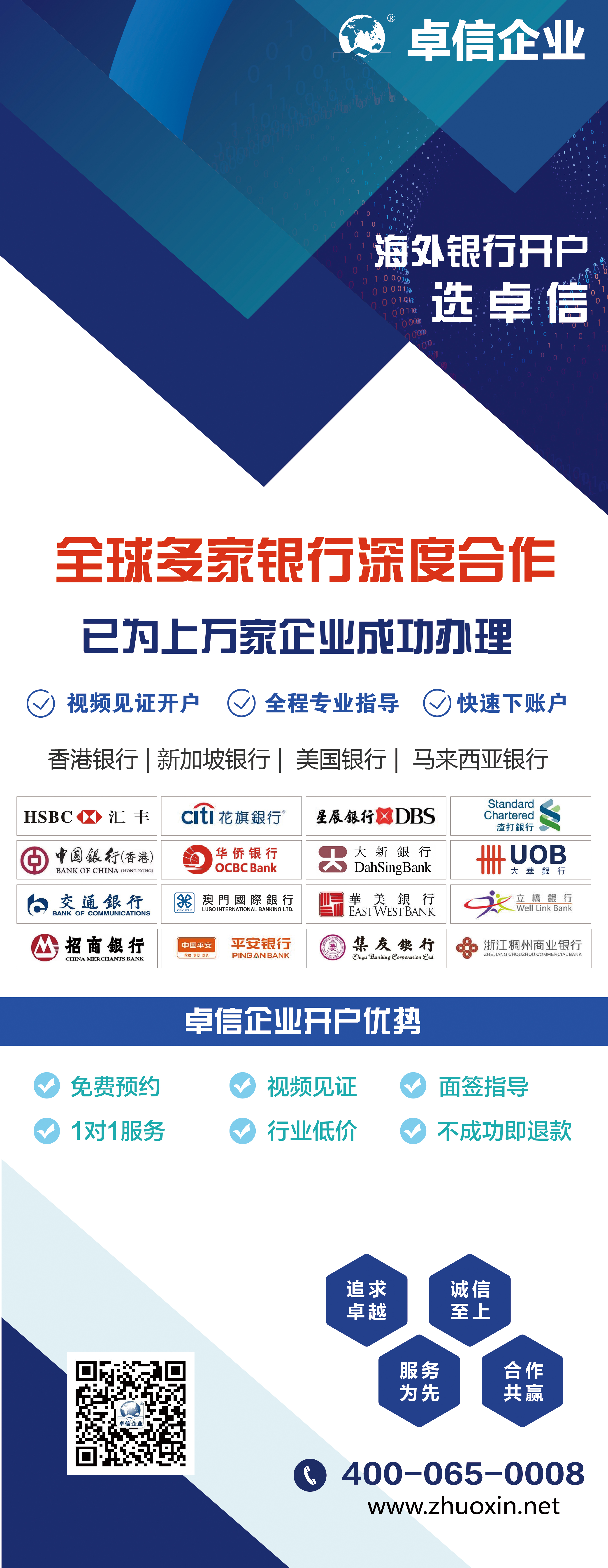 卓信擁有多年開戶經驗,與多家銀行有良好合作關系,為客戶提供免費開戶預約服務,國內視頻見證開戶,全程保駕護航,歡迎隨時聯系!