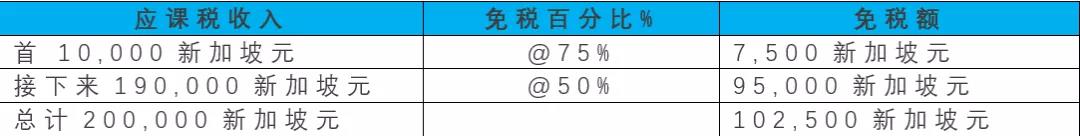 1、首1萬(wàn)新幣應(yīng)納稅收入中的7500新幣免稅;